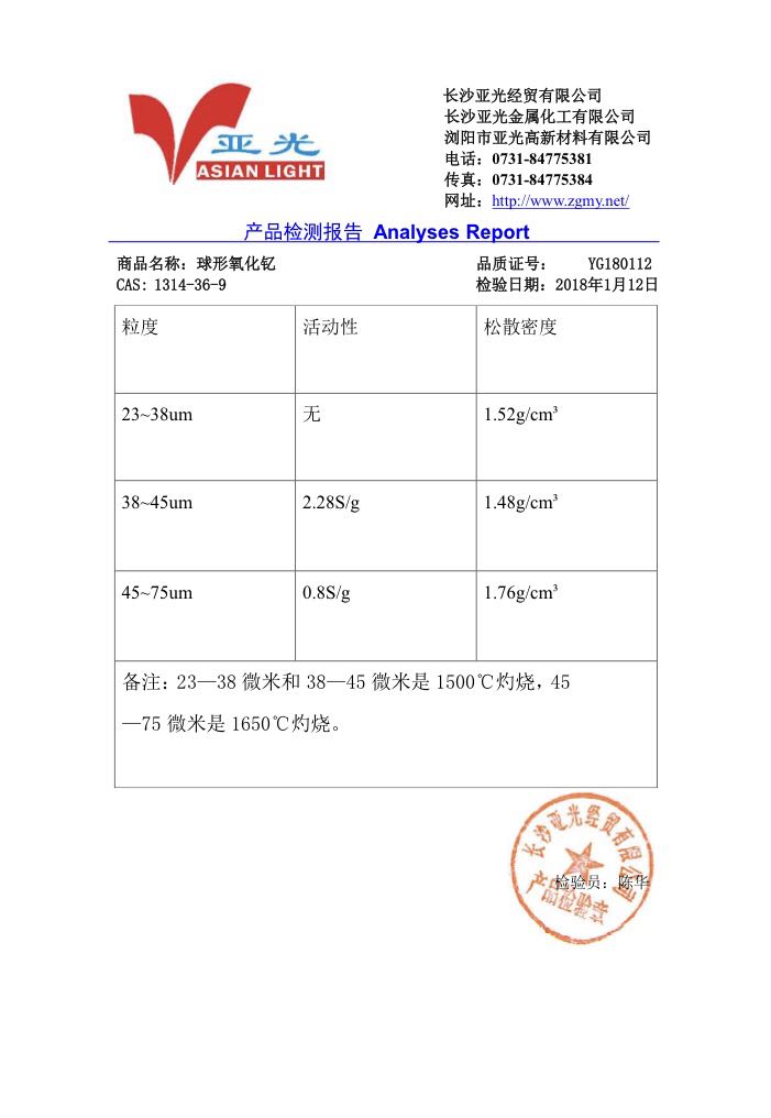 我公司根椐客戶(hù)要求最新研究出造粒5N氧化釔,粒徑20-100微米(可以根據(jù)用戶(hù)要求 篩分分級(jí)供應(yīng)),主要用于電子噴涂(設(shè)備零件生產(chǎn)時(shí)電鍍用),質(zhì)量保證,歡迎聯(lián)糸和試用選購(gòu)。